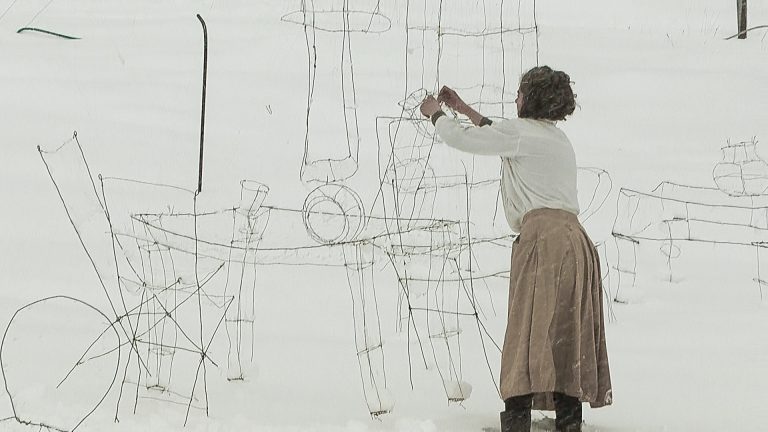 El frío va a pasar, 2013 intervención de alambre y tanza. 80 mts cuadrados. Villa Quilquihue, Lago Lolog, Junín de los Andes. Neuquén.