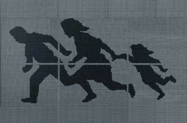 plástico o diferentes materiales bélicos que pego a la manera de un bordado.