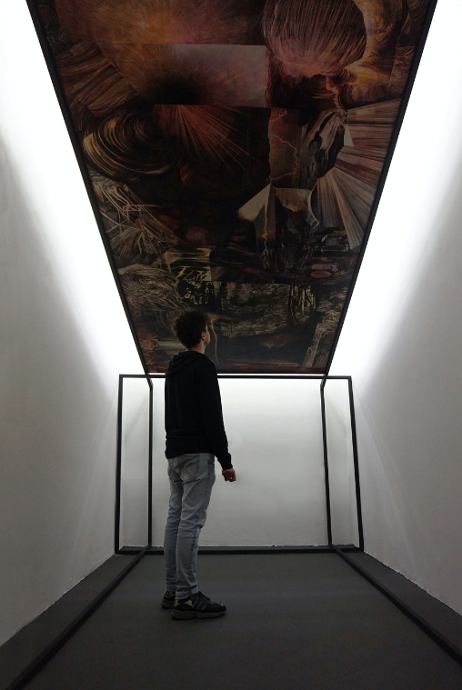 Sus obras comúnmente de grandes dimensiones se presentan como si la arquitectura fuese un despliegue literal de la pintura, de modo que el observador no contemple ya la pintura en cuanto algo exterior a él, sino que la vea desde dentro.