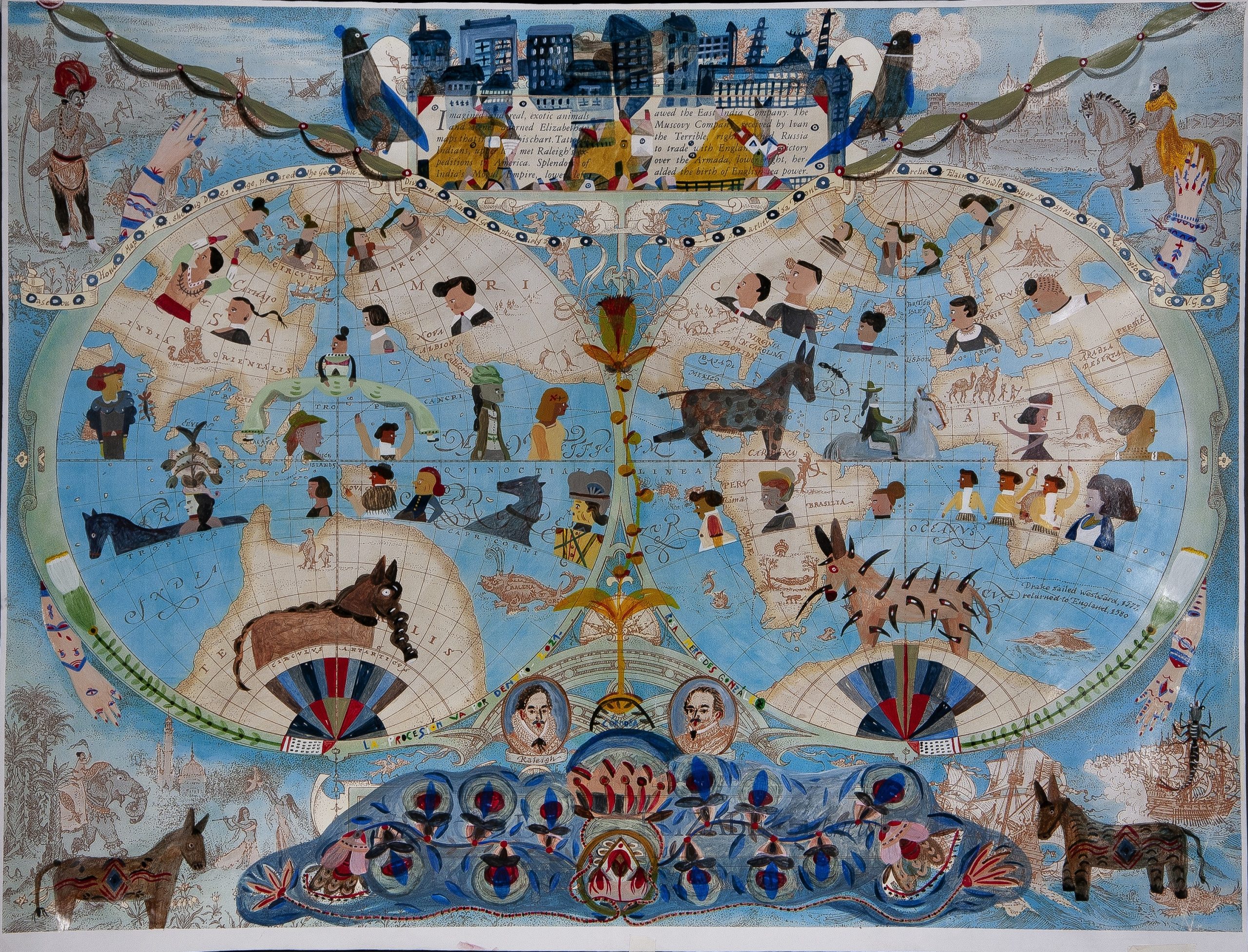 painting, embroidery, collage, xylography. She travels in