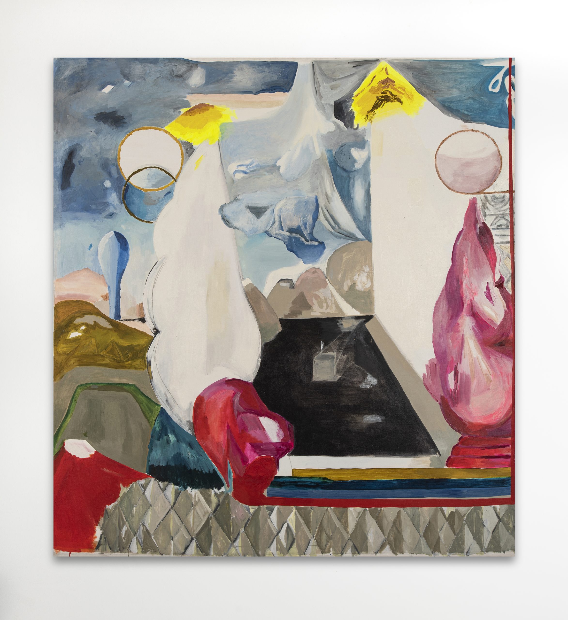 Alejandra Seeber (Buenos Aires, 1969), has been described as having a dialogic approach to painting, where intentionality and random procedures, failings and acceptance operate together without hierarchy. Seeber conceptualizes painting, not from historical references or social conventions but from a visual culture crossed by alternative rock, theatrical stage designs, musical shows, the city’s underground, the digital softwares that started being used in graphic design and the technological novelty in publicity characteristic of the end of the last century. Laying her eyes in domestic interiors, architecture and decorations, Seeber finds an image of the world that she rapidly blows up in stains and squirts that scatter through the canvas making it impossible to see the difference between in and out, between figures and abstraction. In this battle for domesticating symbols and updating meaning, Seeber ends up adding new forms and contexts to images resulting in multiple-layered works that invite us to renegotiate the boundaries between totality and fragment. Some of her most recent projects are A oJO (Barro, Buenos Aires, 2021), Fuera de serie (Museo de Arte Latinoamericano de Buenos Aires, 2021), Getaways (Hausler Contemporary, Lustenau, Austria, 218); Autoamerican (Barro, Buenos Aires, 2015); Cuadro por cuadro (Miau Miau, Buenos Aires, 2014); Yes-yes (Hausler Contemporary, Munich, 2011) Tutti Frutti (Hausler Contemporari, Zurich, 2011); Dialogville (Fundación Proa, Buenos Aires, 2010); Muro O’reverie (Fundación Proa, Buenos Aires, 2009), Pinturalia, Galeria (Fernando Pradilla, Madrid, 2008); The Pregnant painter (Virgil de Voldere Gallery, Nueva York, 2007); Duos (Sperone Westwater, Nueva York (2003); Living Rum (Dabbah Torrejón Arte Contemporáneo, Buenos Aires, 2002); This Room: Painting as a Second Language (Parlour Projects, Brooklyn, 2001); and Serendipia (Galerie de L’Alliance Française, Buenos Aires, 1999), among others. She lives and works in New York.